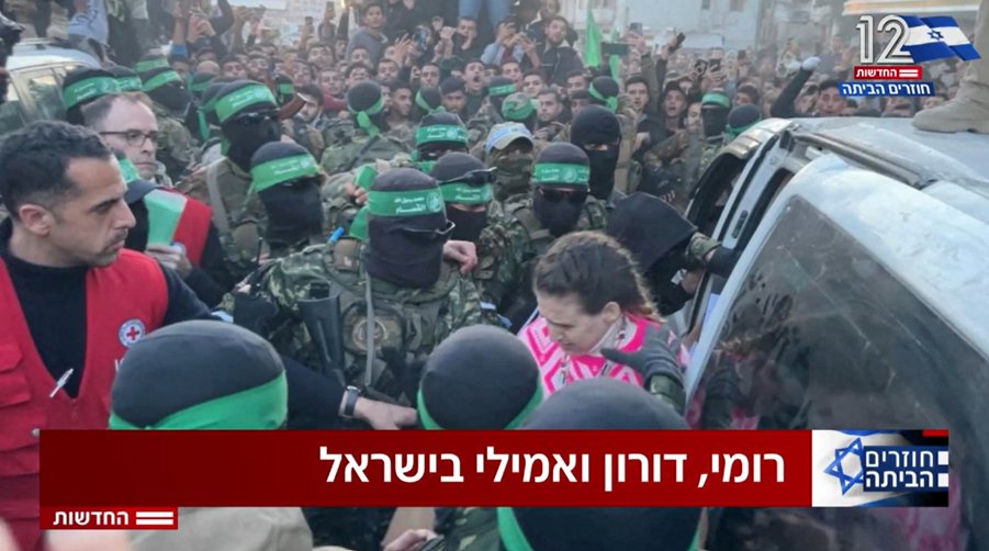 Moment of handover of Israeli hostage, surrounded by Hamas terrorists & screaming Gaza mobs. What a hero, surviving 471 in captivity in this sick place.