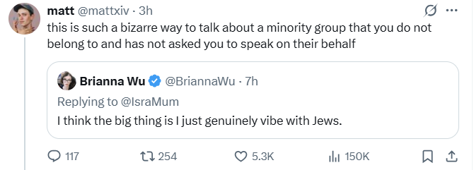 She and I are both in a groupchat full of Jews and I can confirm that @BriannaWu is genuinely vibing with the Jews.