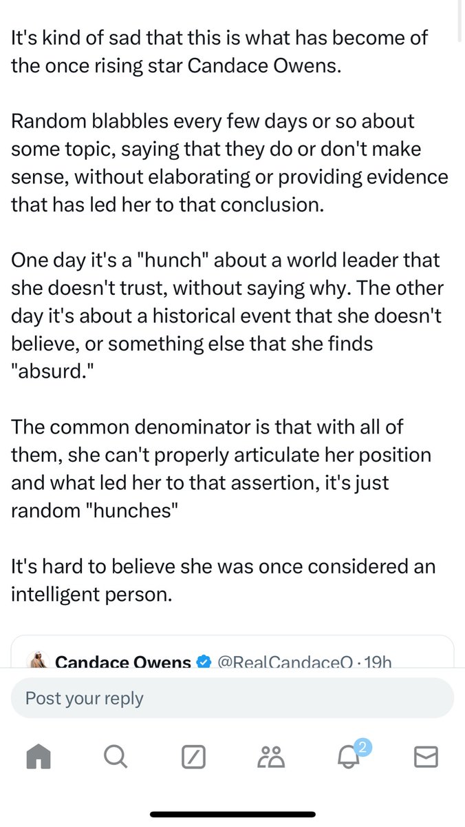 Jane Coaston 🏔️ @janecoaston · Twitter · 2024-06-06 18:11 UTC With respect, she wasn’t. The broader conservative movement just has a massive vulnerability for grifters who tell them things they want to hear, ideally coming from minorities.