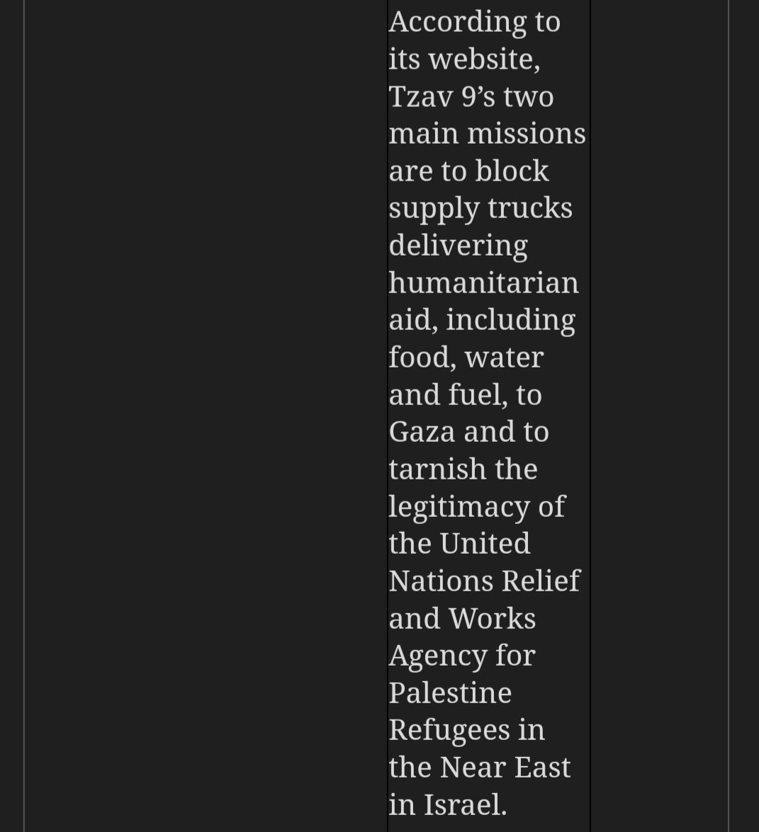 נימוק ״צדדי״, אך מאוד מעניין לעיצומים החד צדדיים של האיחוד האירופי נגד צו 9: *פעילות נגד אונר"א*. בהודעת האיחוד האירופי מאמש על הטלת הסנקציות כנגד התנועה, נכתב כי אחת המטרות של צו 9 היא "להכתים את הלגיטימיות של סוכנות הסעד והעבודות של האו"ם לפליטים פלסטיניים בישראל". כלומר, האיחוד האירופי שנושא את דגל ״הדמוקרטיה הליברלית״ - דגל הכולל חופש ביטוי, זכות מחאה ושקיפות - זועם על כך שנחשפו בציבור הישראלי ובעולם, הקשרים ההדוקים בין חמאס לבין סוכנות האו״ם. כזכור, עובדים רבים של אונר״א התגלו כחברי חמאס, ותשתיות שני הגופים היו מחוברות במקומות רבים. בהודעת האיחוד צויין כי הסנקציות יוטלו גם משום שהתנועה קיימה הפגנה סמוך למטה אונר"א בירושלים, והמאבק שהובילה כנגד הסוכנות. "לפי אתר האינטרנט שלה, שתי המשימות העיקריות של צו 9 הן לחסום משאיות אספקה המספקות סיוע הומניטרי, כולל מזון, מים ודלק, לעזה, ולהכתים את הלגיטימיות של סוכנות הסעד והעבודות של האו"ם לפליטים פלסטיניים בישראל", כותבים האירופים. מישהו יכול להסביר לי מה נאור וליברלי בהגנה על אונר״א ולמה ראש הממשלה, שר החוץ ומשרד החוץ שותקים על זה?