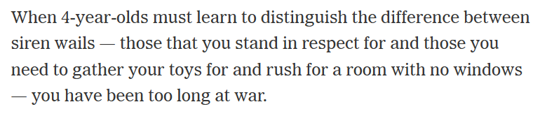 This paragraph tells you how clueless Tom Friedman is. The four-year-olds in Sderot, in Kibbutz Be'eri, in Kfar Maimon have had this problem for over 20 years. That's why we're in this war. So that terrorists won't shoot rockets at our children anymore. If Israel stops the war