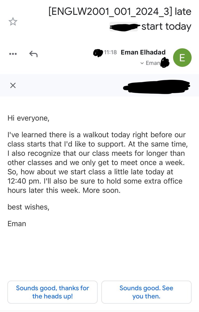 🚨Yesterday a grad student professor @Columbia delayed her class because of “a walkout… that I’d like to support.” Besides the fact that this “walkout” was a festival of terrorist support, professors can’t just choose protests over the classroom.
