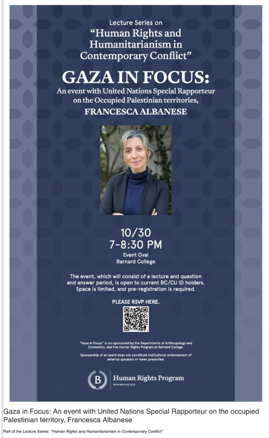 The @BarnardCollege "Human Rights" Program is hosting Francesca Albanese, the antisemitic terror-supporting UN Special Rapporteur who says "the Jewish lobby" controls America, justifies violence as "resistance," and falsely accuses Israel of genocide. So much for human rights...