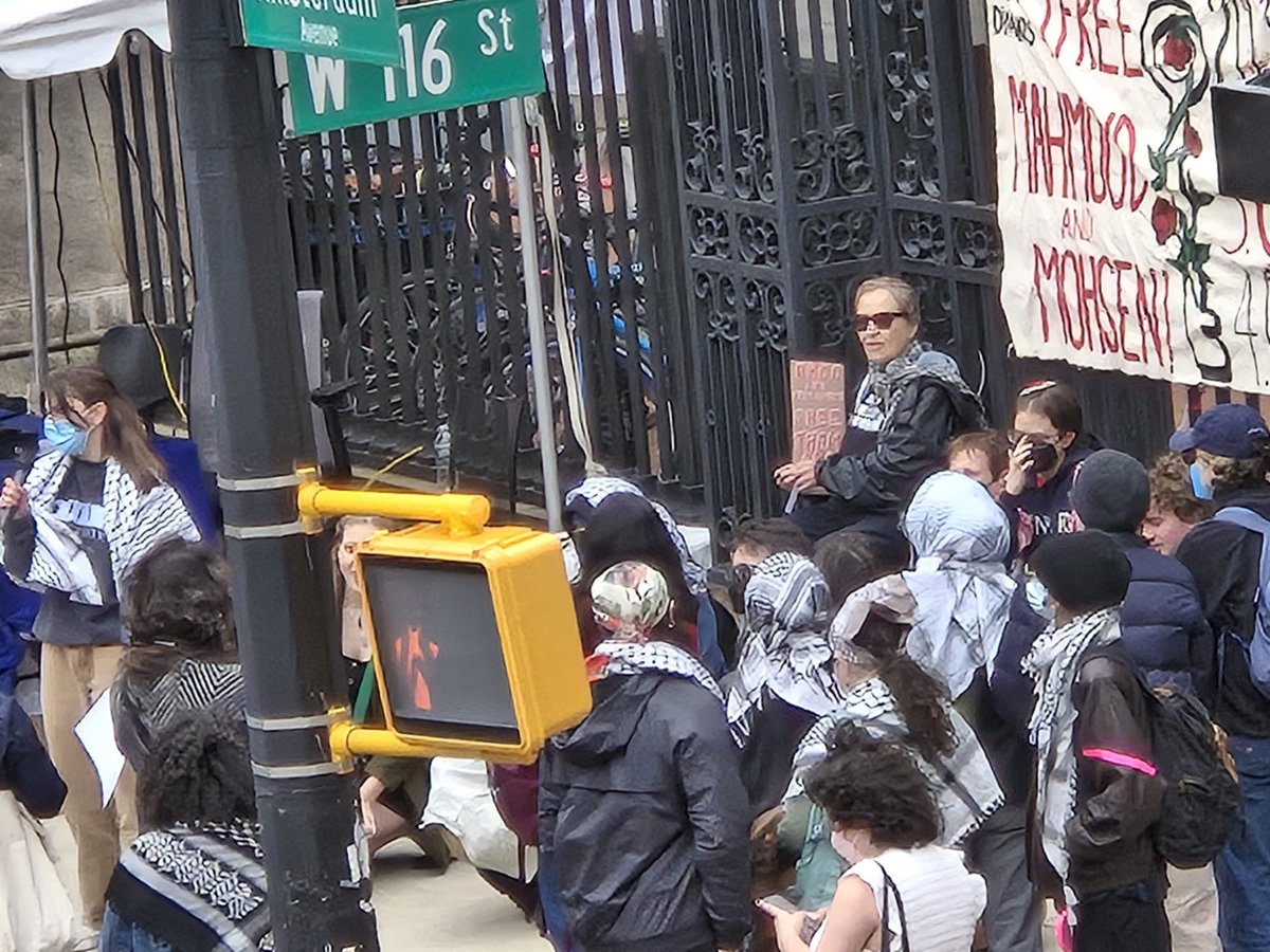 HAPPENING NOW @Columbia - a side by side Anti-Israel protesters chain themselves to a gate Vs. Jewish students give out free books on campus in the name of education and dialogue And we wonder why the pro-Palestine side never knows what they’re talking about…