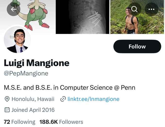 🚨🇺🇸LUIGI MANGIONE’S X ACCOUNT REMOVED, THEN RESTORED BY ELON Luigi Mangione’s X account was temporarily suspended before being reinstated, with Elon stating: “This happened without my knowledge. Looking into it.” Meanwhile, Meta permanently removed his Facebook and Instagram accounts, and YouTube deleted three dormant channels belonging to Mangione under its creator responsibility guidelines. YouTube also removed an impersonation channel that posted a cryptic countdown video Monday, stating: “If you see this, I’m already under arrest.” Social media activity suggests Mangione may have become distant from friends in recent months, with posts indicating missed commitments and prayers for his well-being shortly before his arrest. Mangione, suspected in the murder of UnitedHealthcare CEO Brian Thompson, remains in custody as investigations continue. Source: CNN, NBC @elonmusk