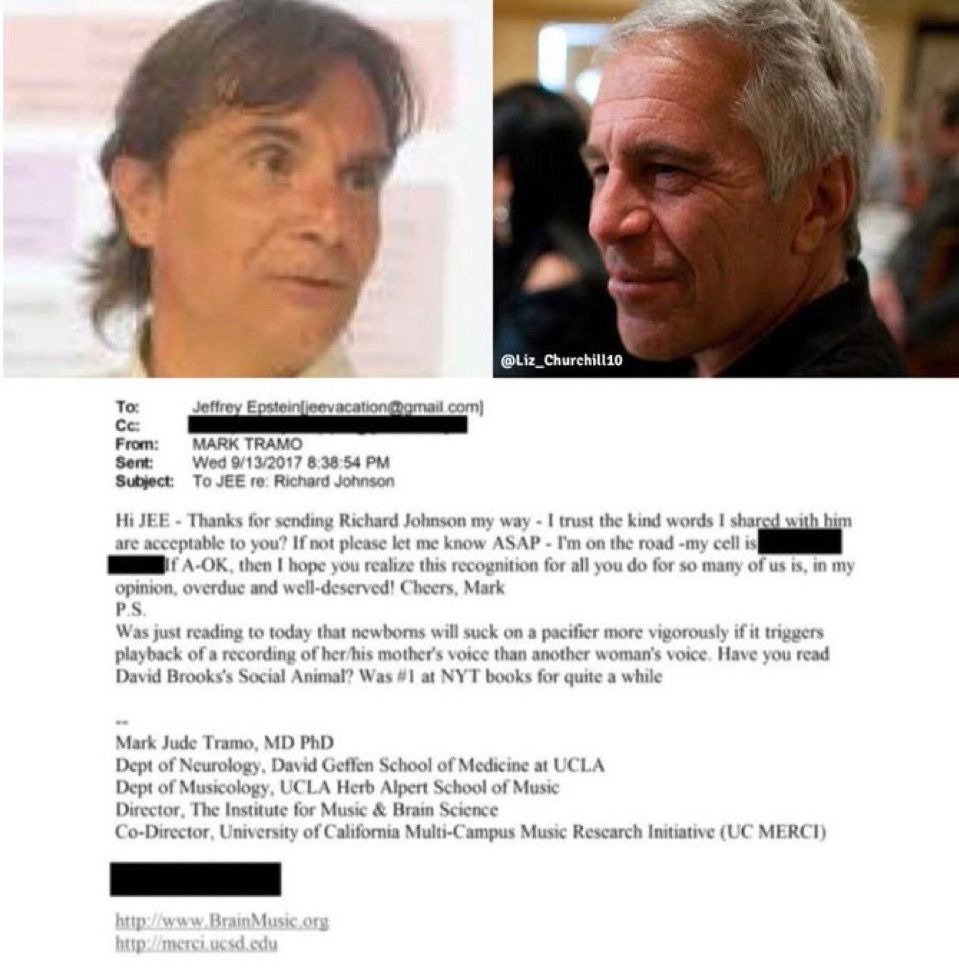Mark Tramo is a professor at the University of California, Los Angeles. Epstein files revealed he said “newborns should suck vigorously on a pacifier.” His page has been removed from the university’s website. Okay, that’s a start... but is he being investigated?
