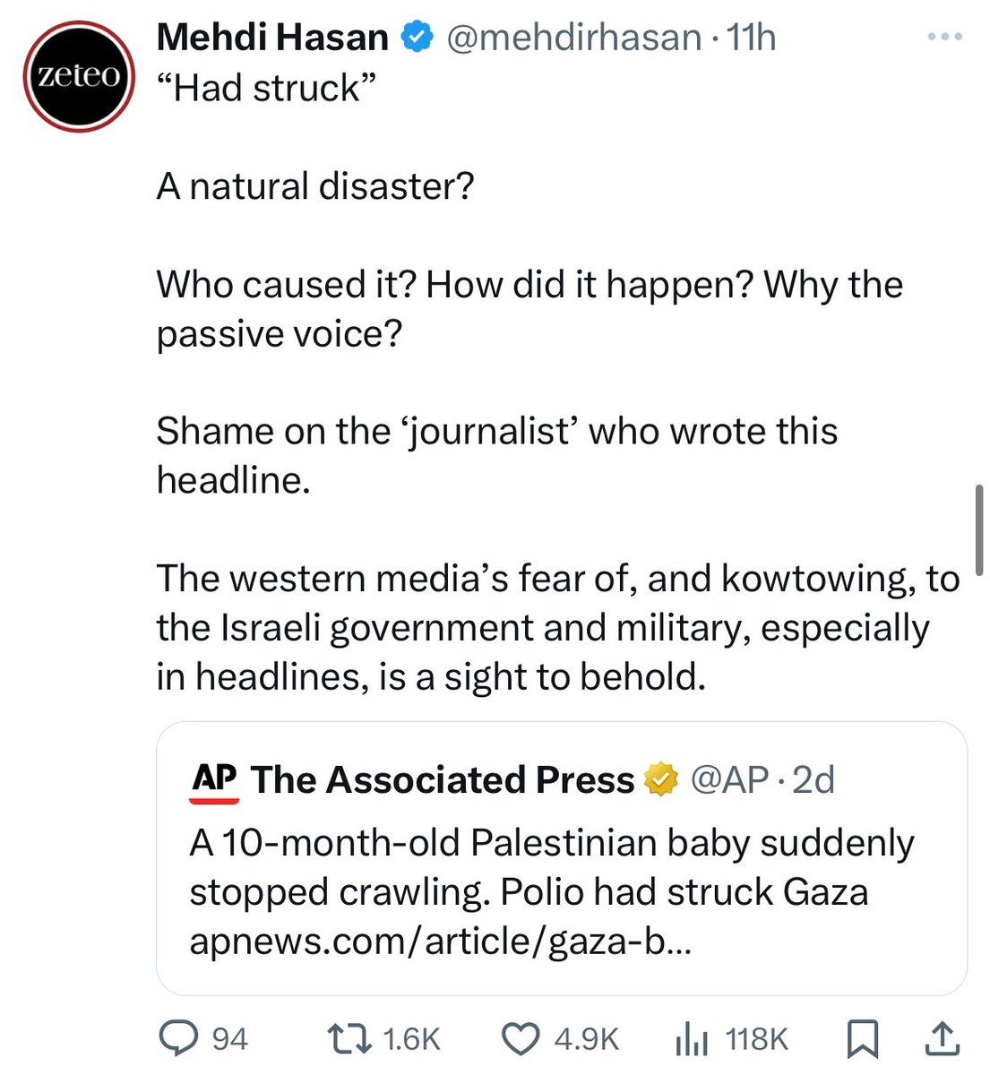 I see we’re back in “the Jews deliberately spread diseases” territory, even though polio coverage was optimal per WHO before Hamas started this war, and Israel has since coordinated with agencies to get 1.3m more vaccines in. But of course, the Jews are spreading diseases.