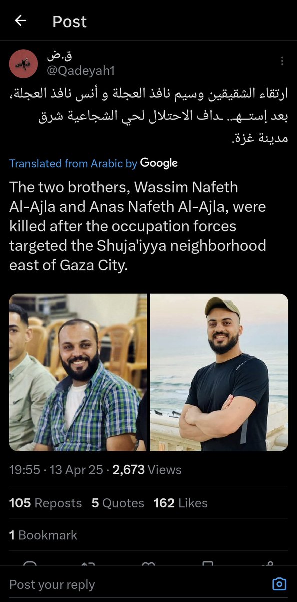 ³⁰ 13-APR-2025, Gaza City, Shuja'iyya Combatants #47-#48 Two brothers: Wassim Nafeth Al-Ajla Anas Nafeth Al-Ajla heroic martyrs were martyred advancing, not retreating Lions of Shuja'iyya (Usud al-Shuja'iyya)