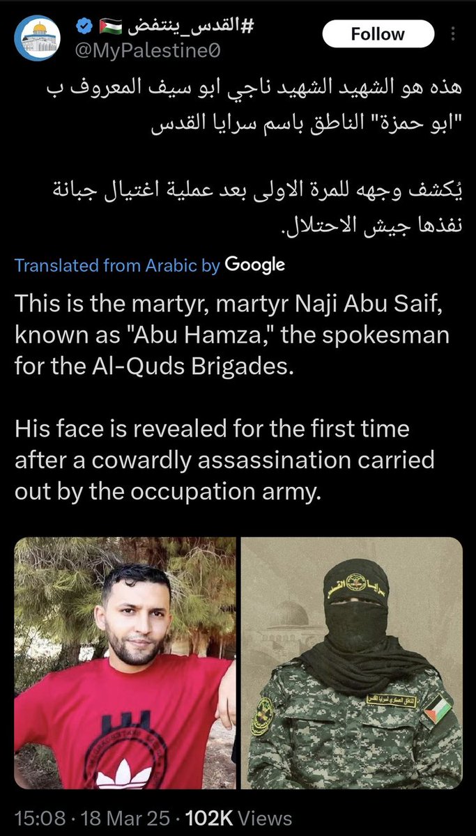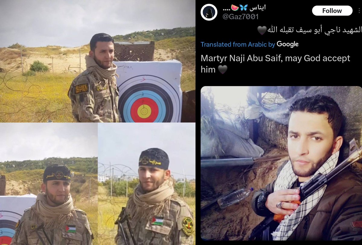 ⁴³ 18-MARCH-2025 Combatant/PIJ Senior #63 Naji Abu Saif 'Abu Hamza' The official PIJ Military Wing (Saraya Al-Quds) Spokesman Abu Haza was killed along with his wife, sister, brother with his wife and child son.