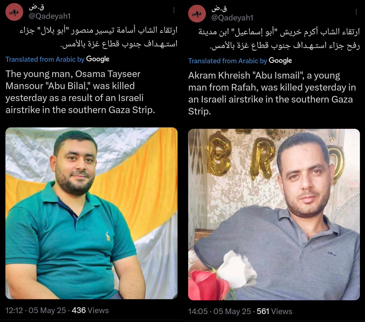 ⁶⁶ 04-MAY-2025, Southern Gaza Combatants #92-#93 Akram Khreish "Abu Ismail" Osama Tayseer Mansour Mujahid, advancing, not retreating, after inflicting loss and sorrow upon the enemy, martyred on the path to liberating the holy land, martyred on the path to Jerusalem