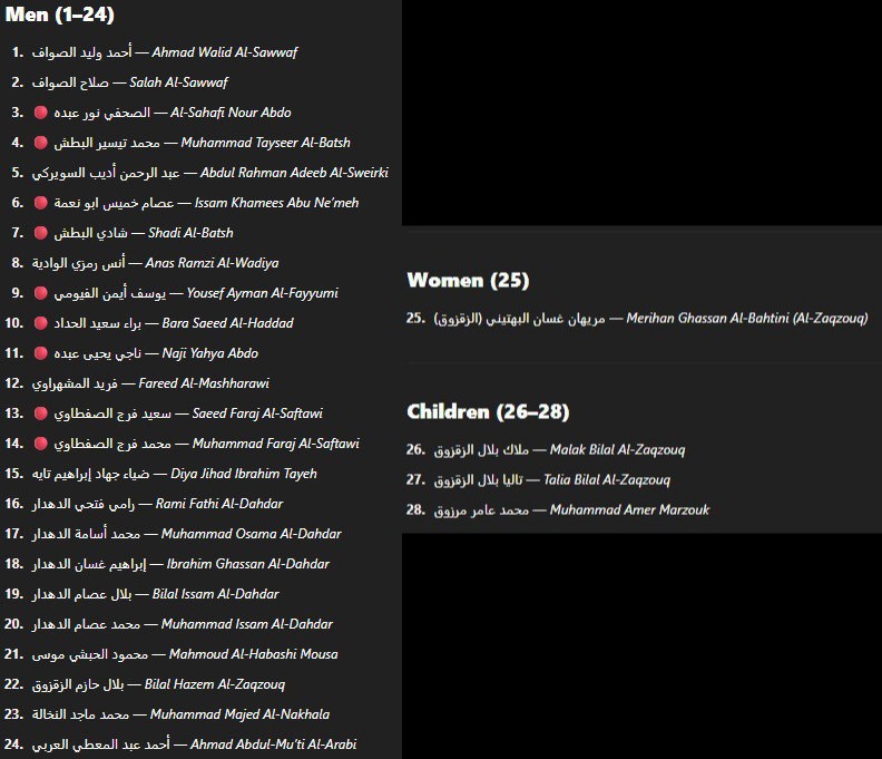 ⁸⁵ 07-MAY-2025, Gaza City, Tuffah Al-Karama School Combatants #119-#127 Bara Saeed Al-Haddad Muhammad Tayseer Al-Batsh Shadi Al-Batsh Yousef Ayman Al-Fayyumi Nour Abdo Naji Abdo Saeed Faraj Al-Saftawi Muhammad Faraj Al-Saftawi Issam Khamees Abu Ne'meh https://x.com/MiddleEastBuka/status/1922275286512464381?t=2QM43JaMxq0bAMg19J2odA&s=19