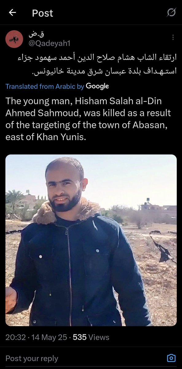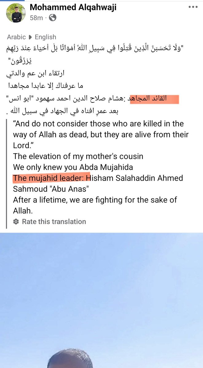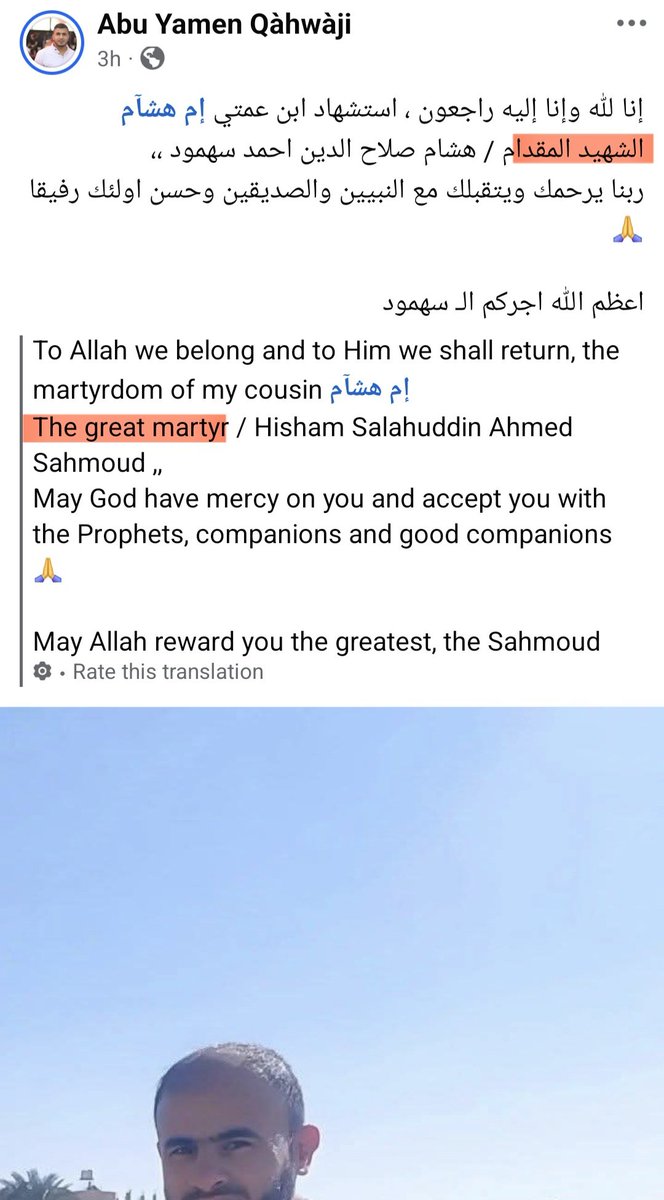 ⁹⁰ 14-MAY-2025, Abasan Combatant #133 Hisham Salah al-Din Ahmed Sahmoud هشام صلاح الدين أحمد سهمود Mujahid Leader, brave/great martyr, lived like a hero and died like a hero