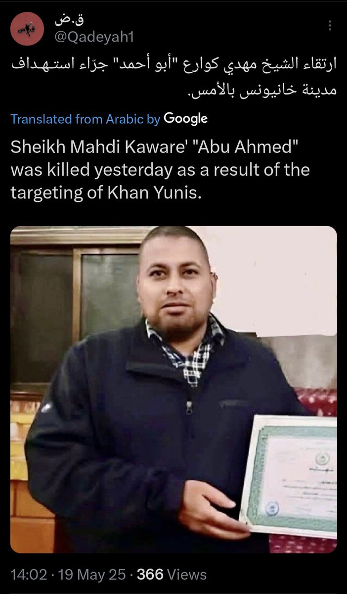 ¹⁰⁷ 18-MAY-2025, Khan Yunis Combatant #156 Mahdi Kaware "Abu Ahmed" مهدي كوارع "أبو أحمد" Central Khan Yunis Battalion Commander (Hamas)