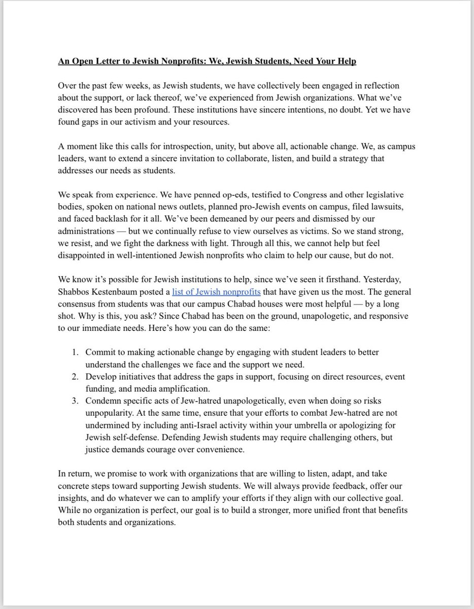 As Jewish students on the front lines against antisemitism on college campuses we are calling for organizations which have promised to support us but have fallen short to do better. We are committed to work with you to meet the needs of Jewish students on campus!