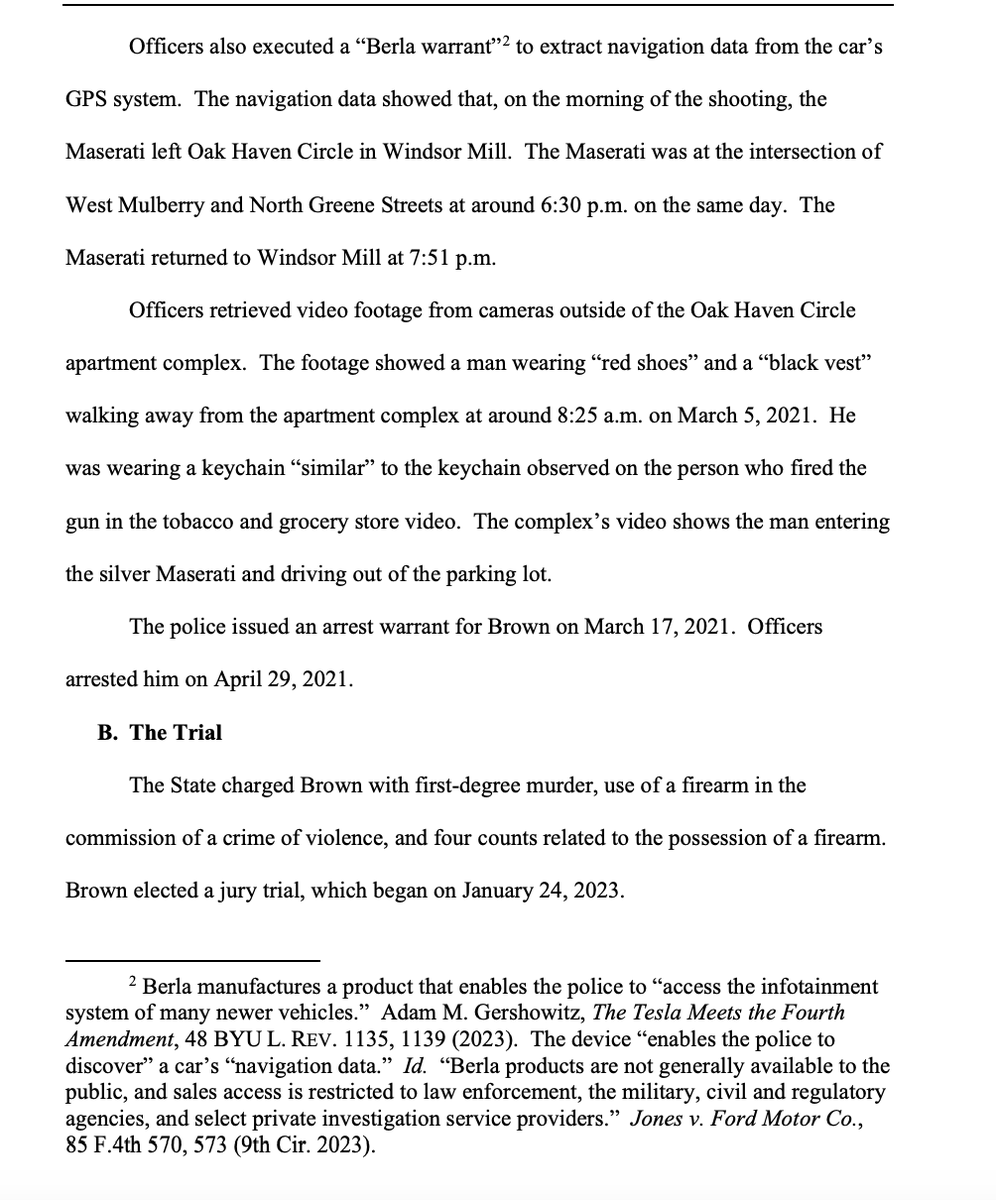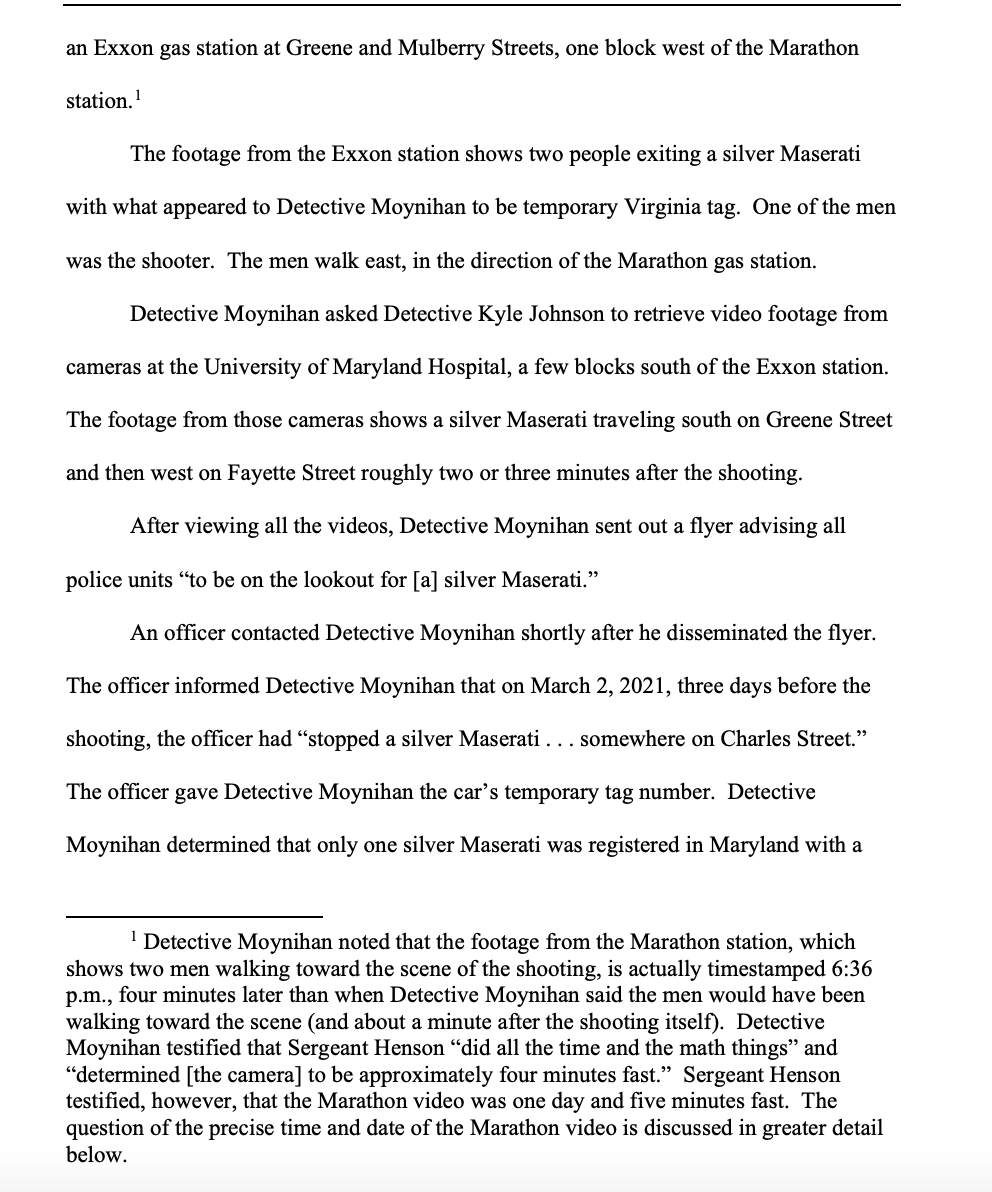 It takes a lot of coincidences for video footage and other surveillance to work in a way that will solve a murder case like this. But when it works, it is quite something to read. (4 pages from the op, explaining the investigation, in the screenshots.) https://courts.state.md.us/sites/default/files/unreported-opinions/0914s23.pdf