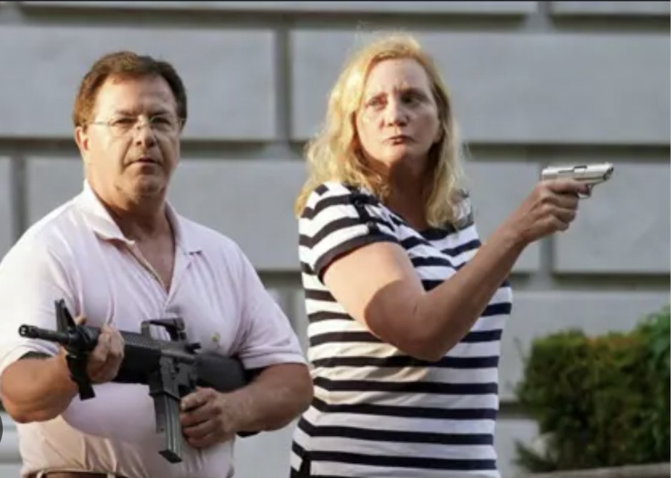 It's been almost 5 yrs since Patricia and Mark McCloskey went viral for their confrontation w/ post-George Floyd protesters outside their STL home. Today, I ran into them at a local brewery and asked what they were up to and what they made of the current state of affairs. 🧵