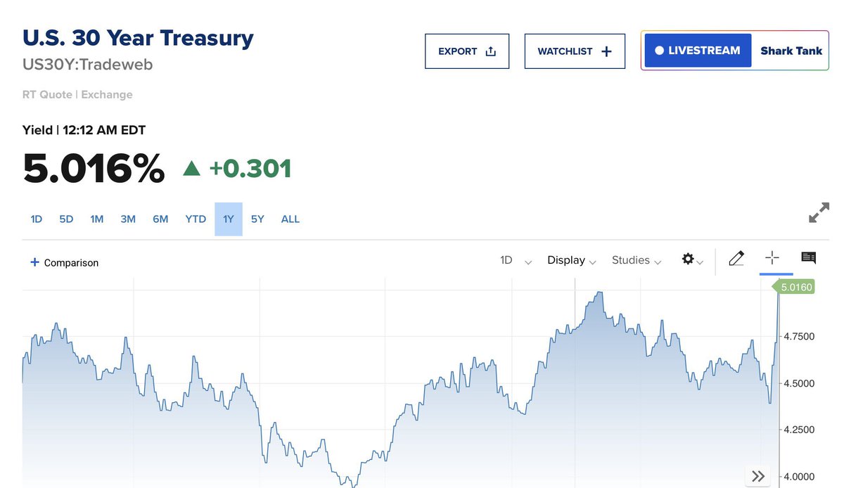 🚨🚨 5.00% 30 YEAR YIELD 🚨🚨 MELTDOWN in the bond market tonight.