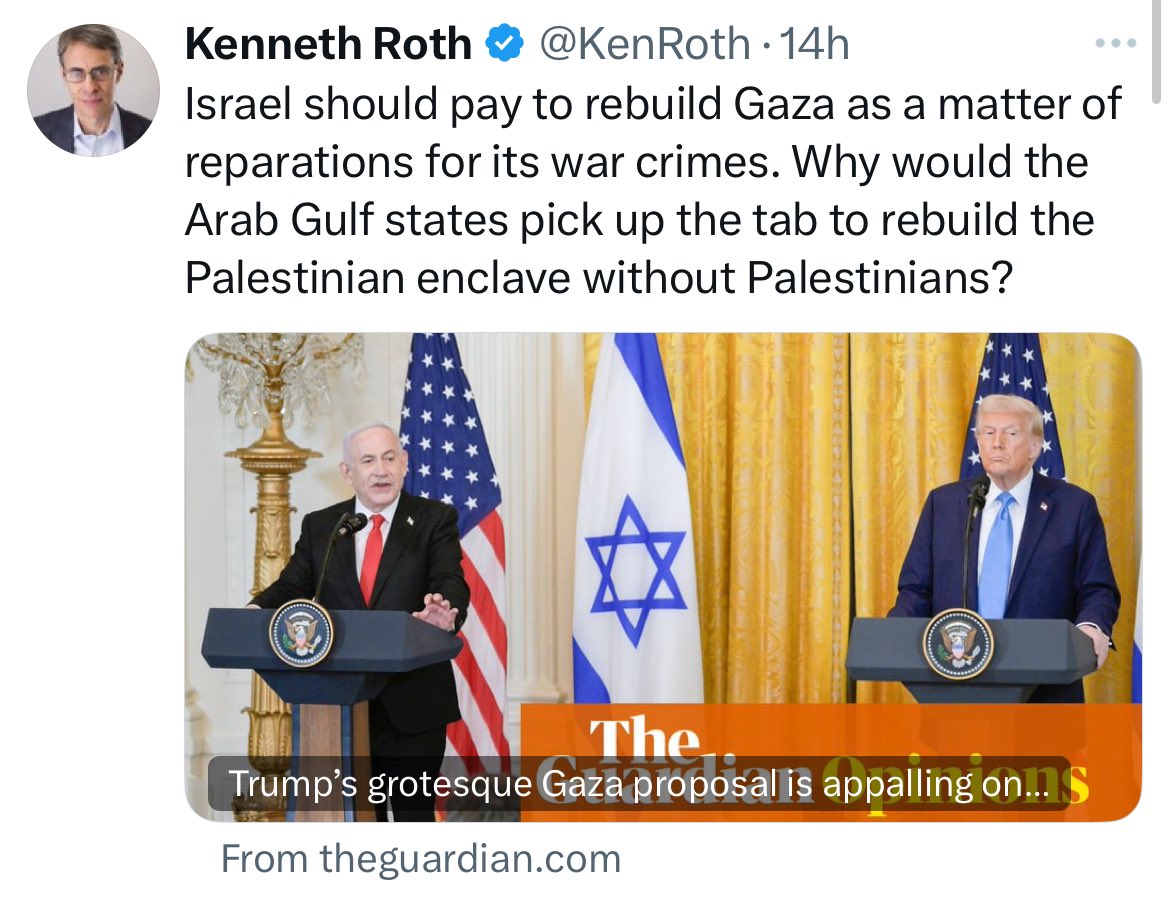 Israel should demand reparations from Gaza, Iran and Qatar. They should also demand reparations for the million Jews who became refuges from Arab lands after 1948. Not joking.