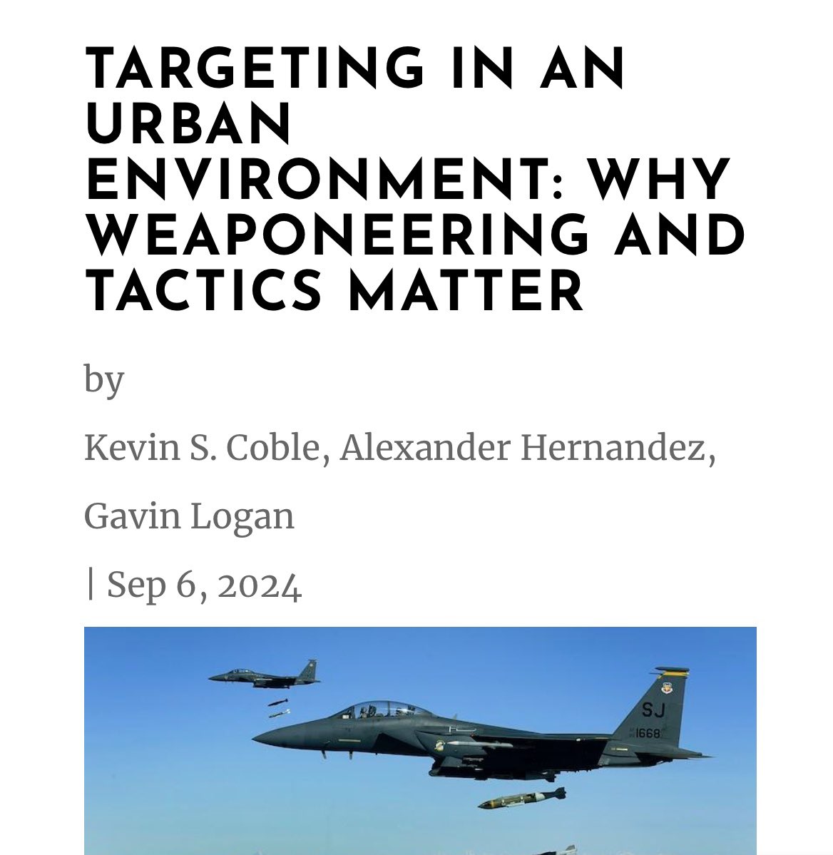Must read: “Targeting in an Urban Environment: Why Weaponeering and Tactics Matter” @WestPoint_USMA @jimsciutto For any politician or media commenting on Israel’s war against Hamas in Gaza. “the assessment of whether a weapon was used lawfully is almost always a contextual