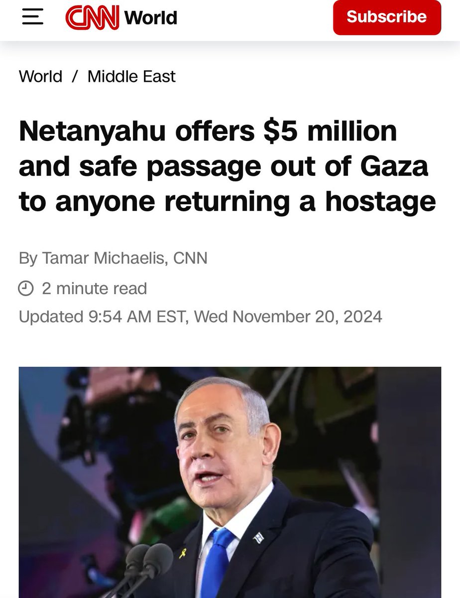 Last month. Israel’s Prime Minister offered $5 million and safe passage out of Gaza to anyone returning a hostage. No one came forward. That context has meaning. https://www.cnn.com/2024/11/20/middleeast/netanyahu-offers-5-million-and-safe-passage-for-returning-hostages-intl/index.html