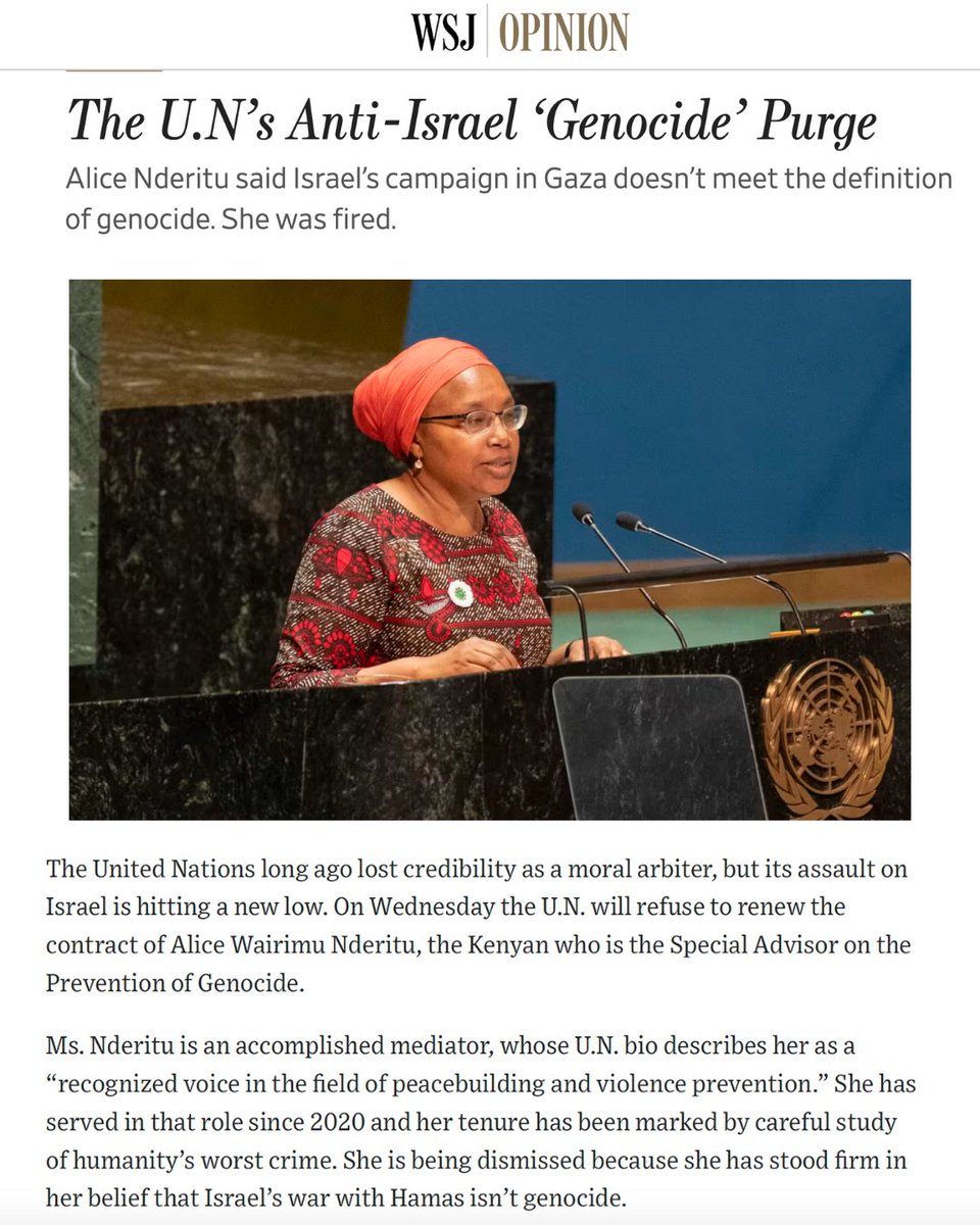 BREAKING: UN Watch offers job to human rights expert Alice Nderitu after she was fired by the UN for refusing to falsely accuse Israel of genocide.