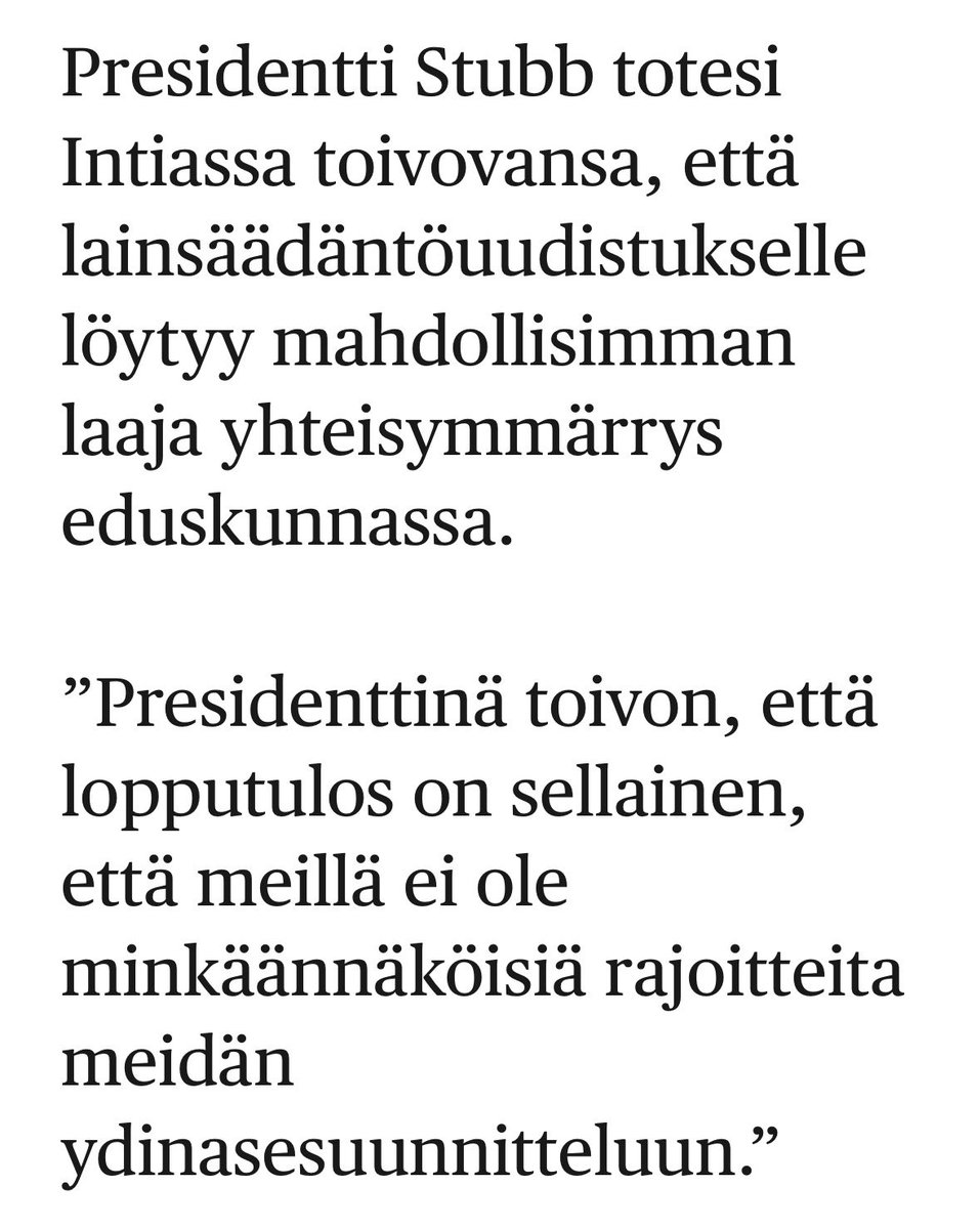 Veronika Honkasalo @veronikahonka · Twitter · 2026-03-06 11:16 UTC Minusta ei ole asiallista, että presidentti puuttuu näin voimakkaasti eduskunnan päätöksentekoon varsinkin kun asia on kiireessä, salassa ja parlamentarismista välittämättä valmisteltu. 1/