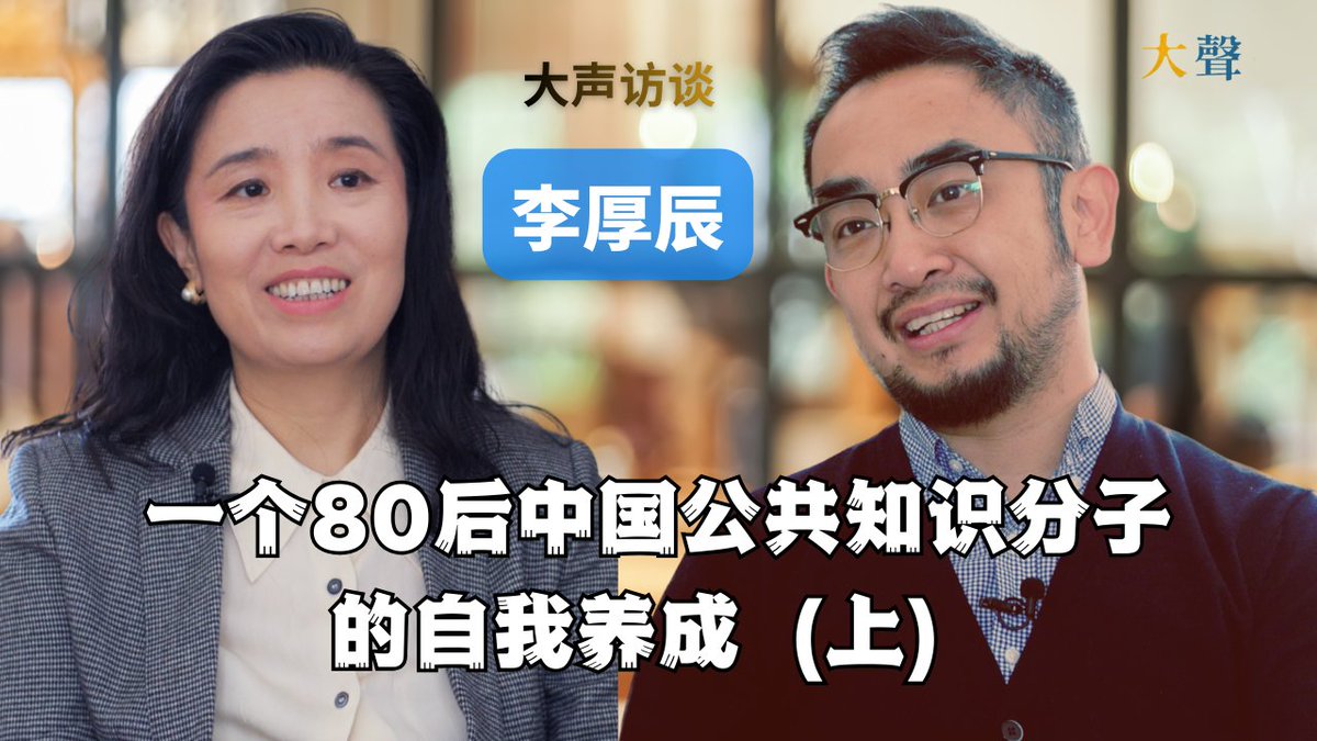 • Vivian Wu @vivianwubeijing · Twitter · 2026-03-05 00:05 UTC 大声访谈最新节目明天首发。李厚辰:一个中国80后公共知识分子的自我养成(上) 我和厚辰@Ansel_Flipradio在纽约聊他的出厂设置,家风与“体面”的标准、他为什么说:自我审查很不体面。也聊今天做公共知识分子还有意义吗?理性讨论在审查、犬儒、去政治化与情绪化夹击下还能留下些什么?