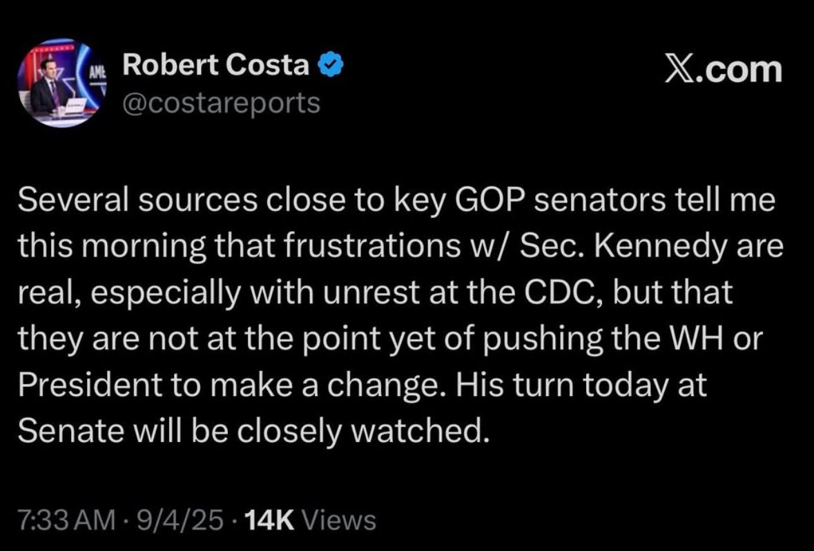 I don’t give a damn how “frustrated” GOP senators now are with RFK Jr. Screw their frustrations. They were the ones who voted to put that whack job in charge of the nation’s public health. They own every dangerous, irresponsible thing Kennedy does. Cowards.