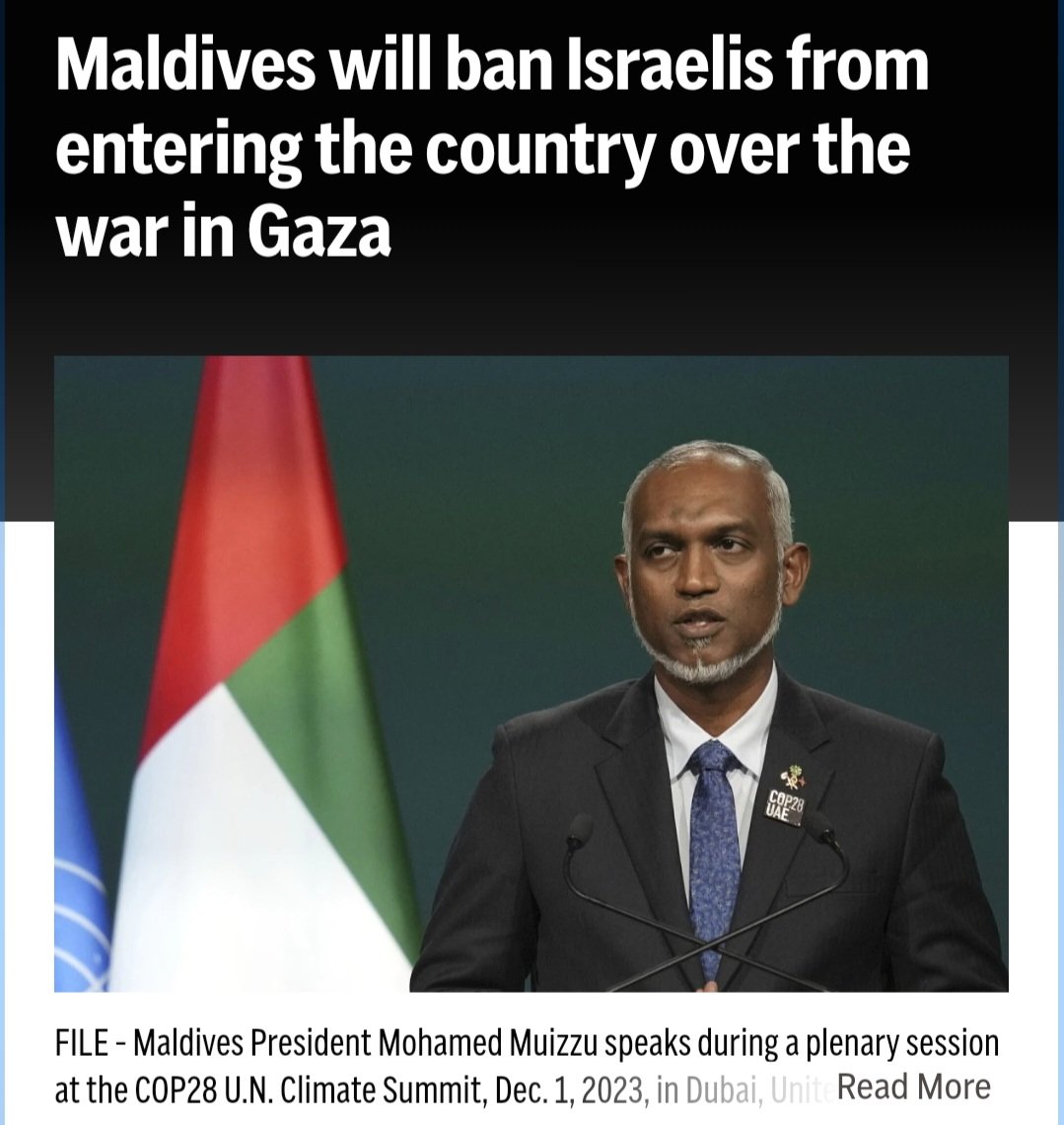 The government of the Maldives decided to ban Israelis from entering the island because of the war in Gaza. Do you understand they didn’t ban entry for Palestinians after the October 7th massacre? To them if you raped, kidnapped, and massacred Israelis you are welcome to vacation there, but if your country defended itself against a terrorist organization you are not allowed entry. They didn't ban entry for citizens of Iran, North Korea, or Syria... only Israelis! This is the definition of apartheid by the way. They may have beautiful islands, but their policies are the ugliest out there... Supporters of antisemitic terrorism!
